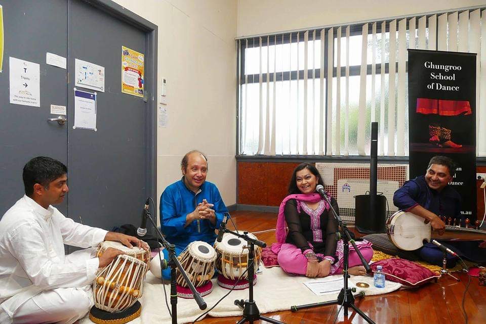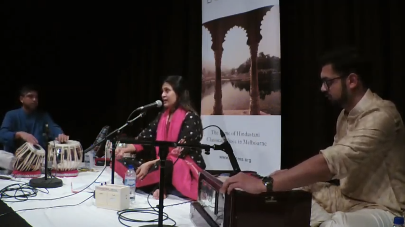 Accompanying Smt Rahila Sarma at a concert organised by the Melbourne Hindustani Classical Music Society at Kew Courthouse (2018)